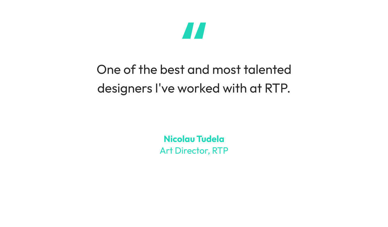 Creative Director and Design Lead with a background in both Psychology and Communication Design. Over the past 15+ years I've worked with brands, tech companies, and cultural institutions across brand, motion, illustration, and experience design. From live news at RTP to global brands like Novartis, Penguin Random House, and Aga Khan Foundation.