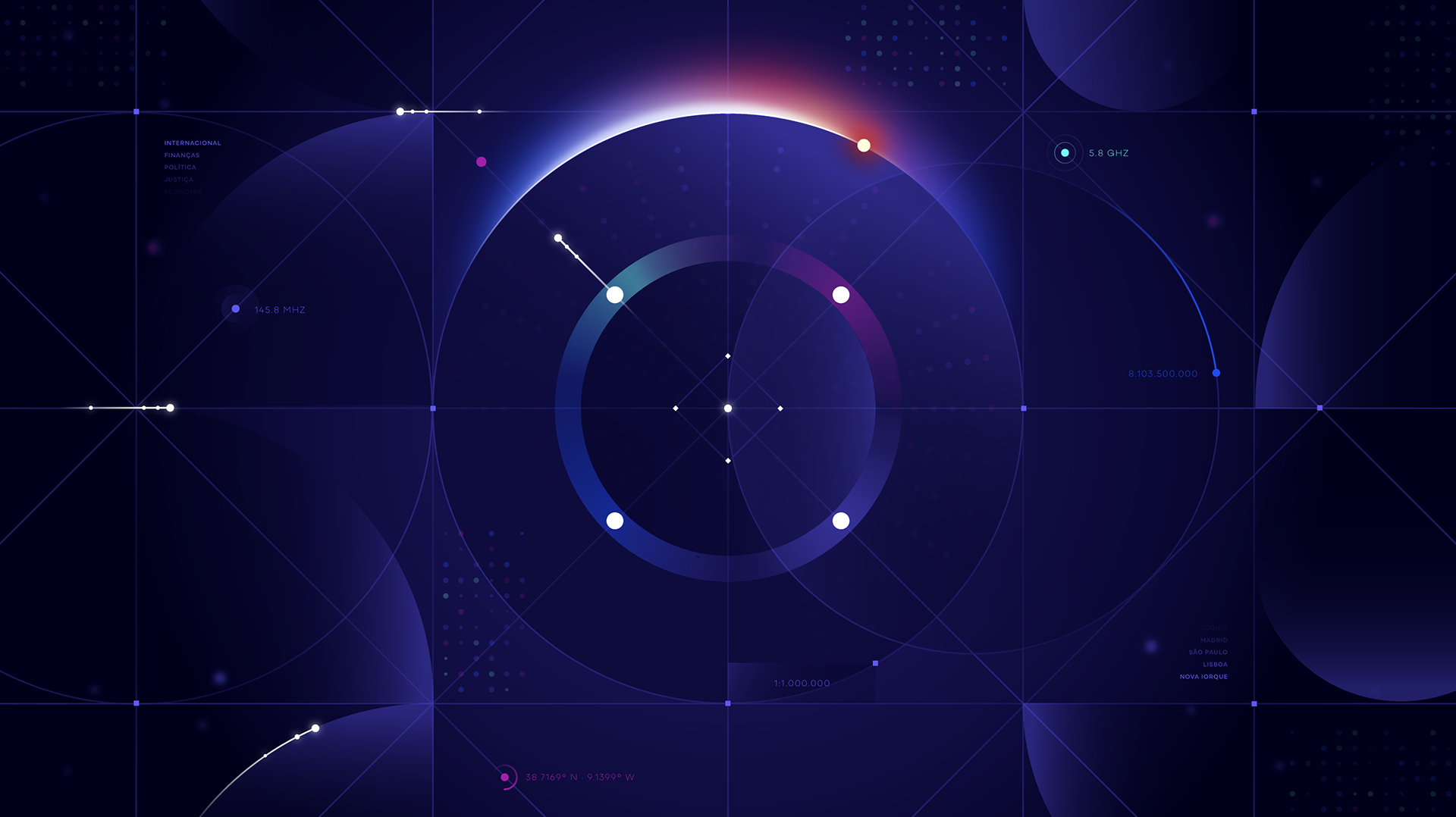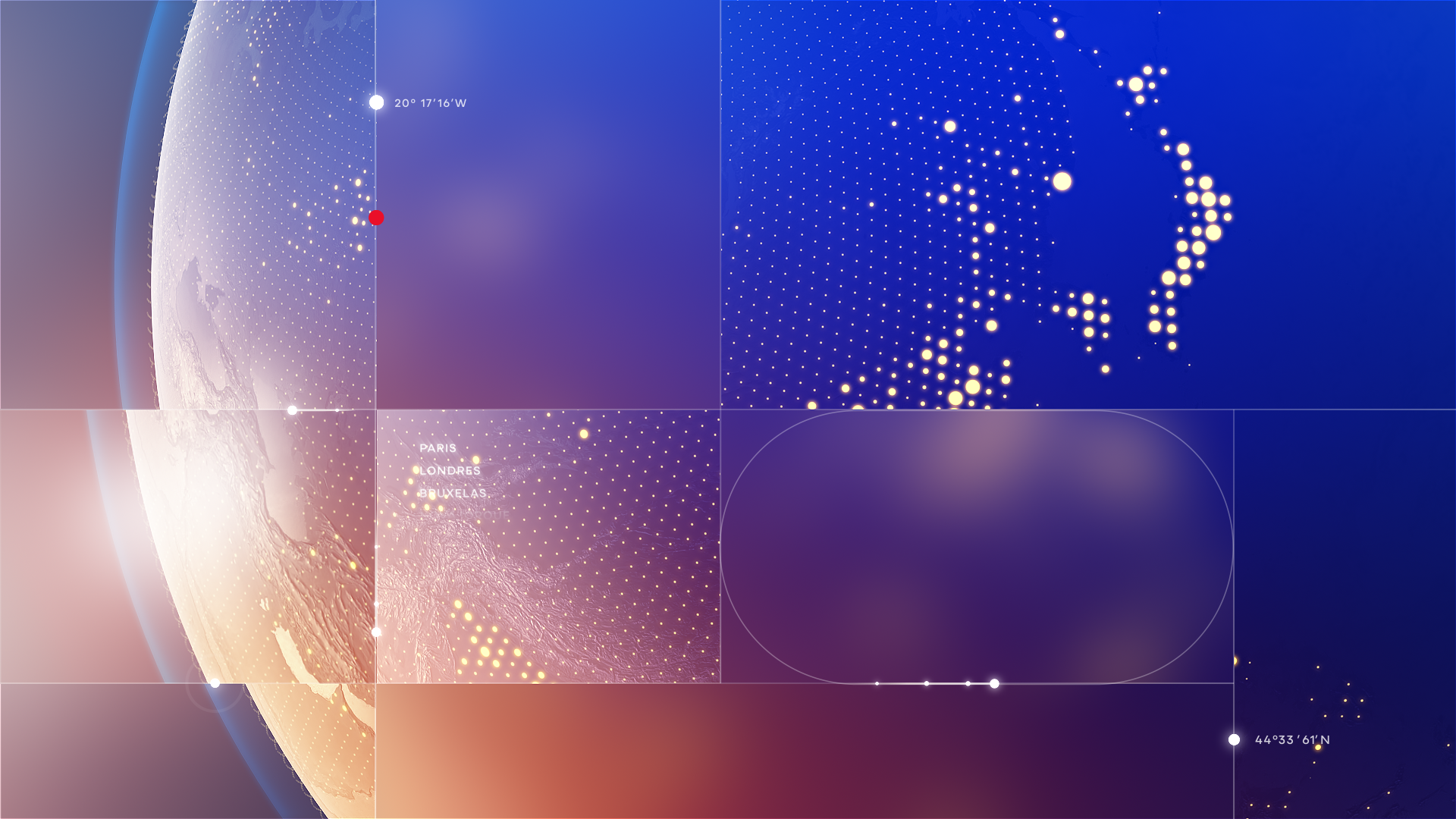 A living grid pays homage to print journalism, while a glass-inspired aesthetic brings light, truth, and depth to the screen. A 3D globe with animated markers highlights RTP’s global presence, while evolving color gradients follow the rhythm of the day, from dawn to late edition.
