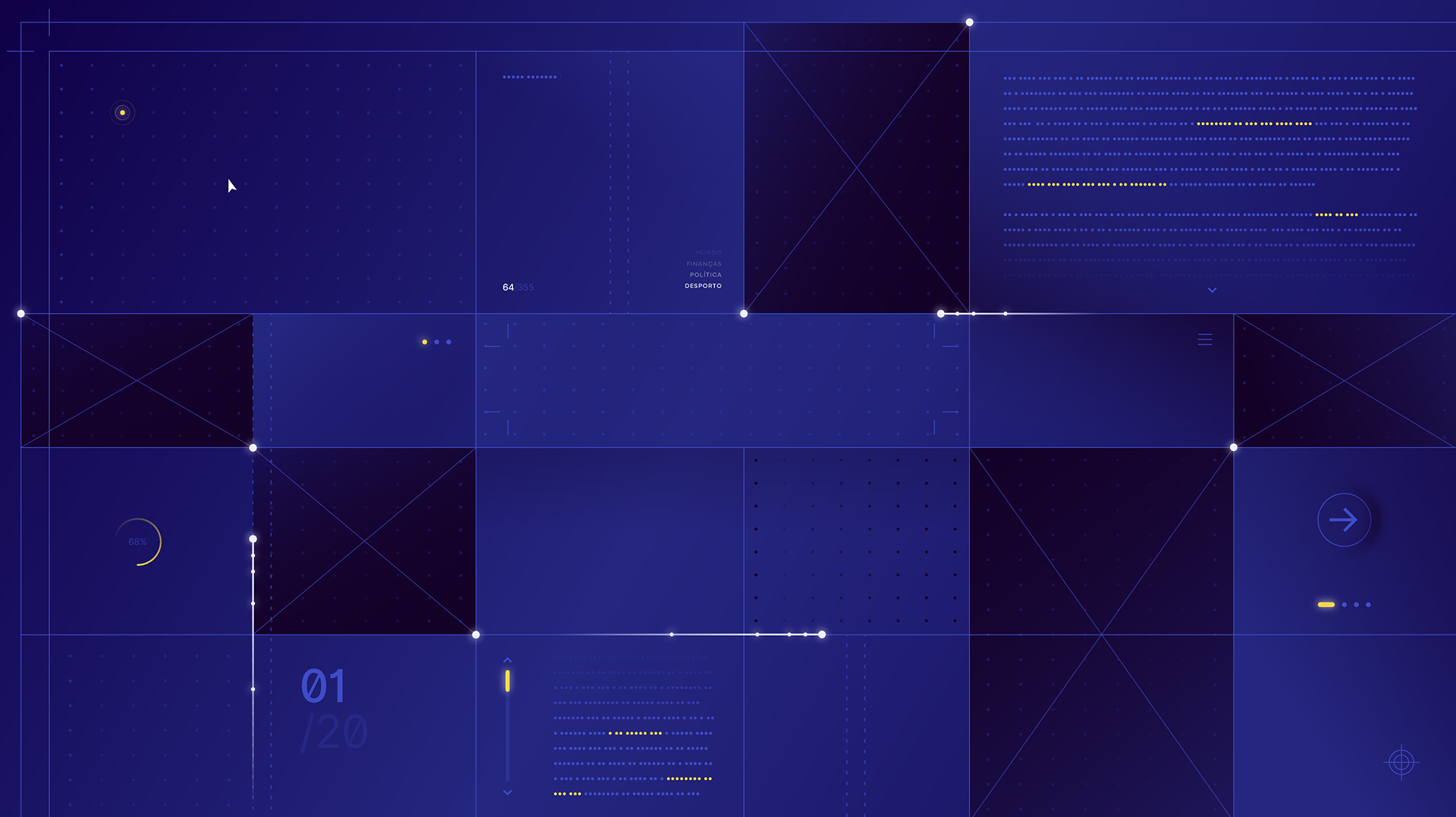 Built around the geometry of the RTP Notícias logo, the grid acts as a metaphor: the channel as a window to the world, where light, structure, and information meet.